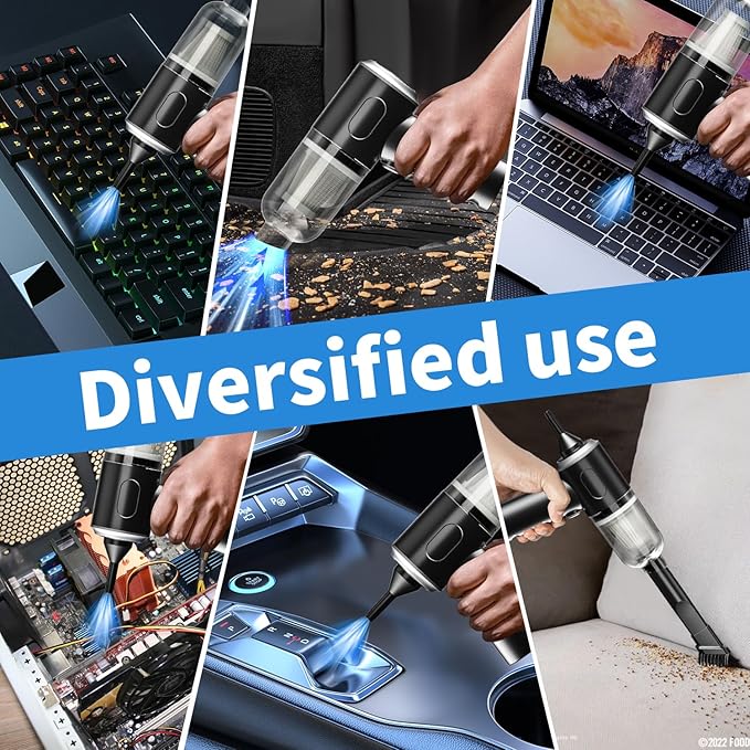 This handheld vacuum cordless not just a vacuum cleaner, but also an air duster. The vacuum has a smart design, the front end can vacuum while the rear end can blow dust, which gives you efficiently cleaning experience.This is enough to meet your cleaning needs for dust, pet hair and some difficult-to-clean debris in the car or home.